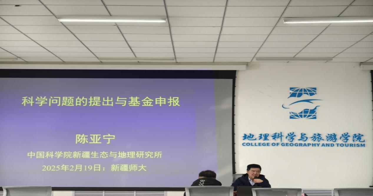 本次会议特邀陈亚宁研究员作专题分享,阿里木江・卡斯木教授向在场教师详细介绍了主讲人陈亚宁研究员,他来自中国科学院新疆生态与地理研究所,在《Science Advances》《Nature Communications》《Nature Climate Change》等国际顶尖学术刊物上发表 SCI 论文 300 余篇,先后主持并圆满完成30余项国家级科研项目(包括国家973计划项目、国家科技支撑计划项目课题、国家自然科学基金重点项目等共6个重点项目),荣获国家科技进步二等奖4项,新疆科技进步特等奖1项、科技进步一等奖6项、自然科学一等奖1项,且均排名第一。同时,他还在国际水文科学协会(IAHS)中国遥感分委会、中国生态学会可持续生态专业委员会、中国地理学会综合减灾专业委员会等知名学术组织中担任重要职务,在学界具有广泛影响力。